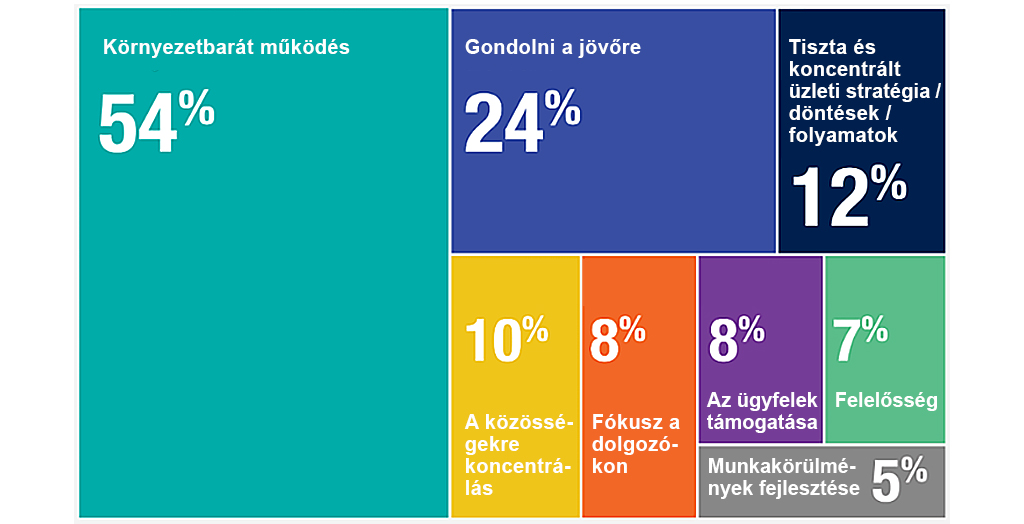 Magyarország szintén felbukkan a felmérésről készült riportban: az eredmény némiképp eltér a globális átlagtól. Nálunk a legerősebb fenntarthatósági téma (38%) a környezetnek nem ártó, rezilienes iparágak kifejlesztése, ezt követi „annyi fogyasztás, amennyire éppen szükség van, felesleges hulladék termelése nélkül – mindezek jóval magasabb átlagga, mint a globális.